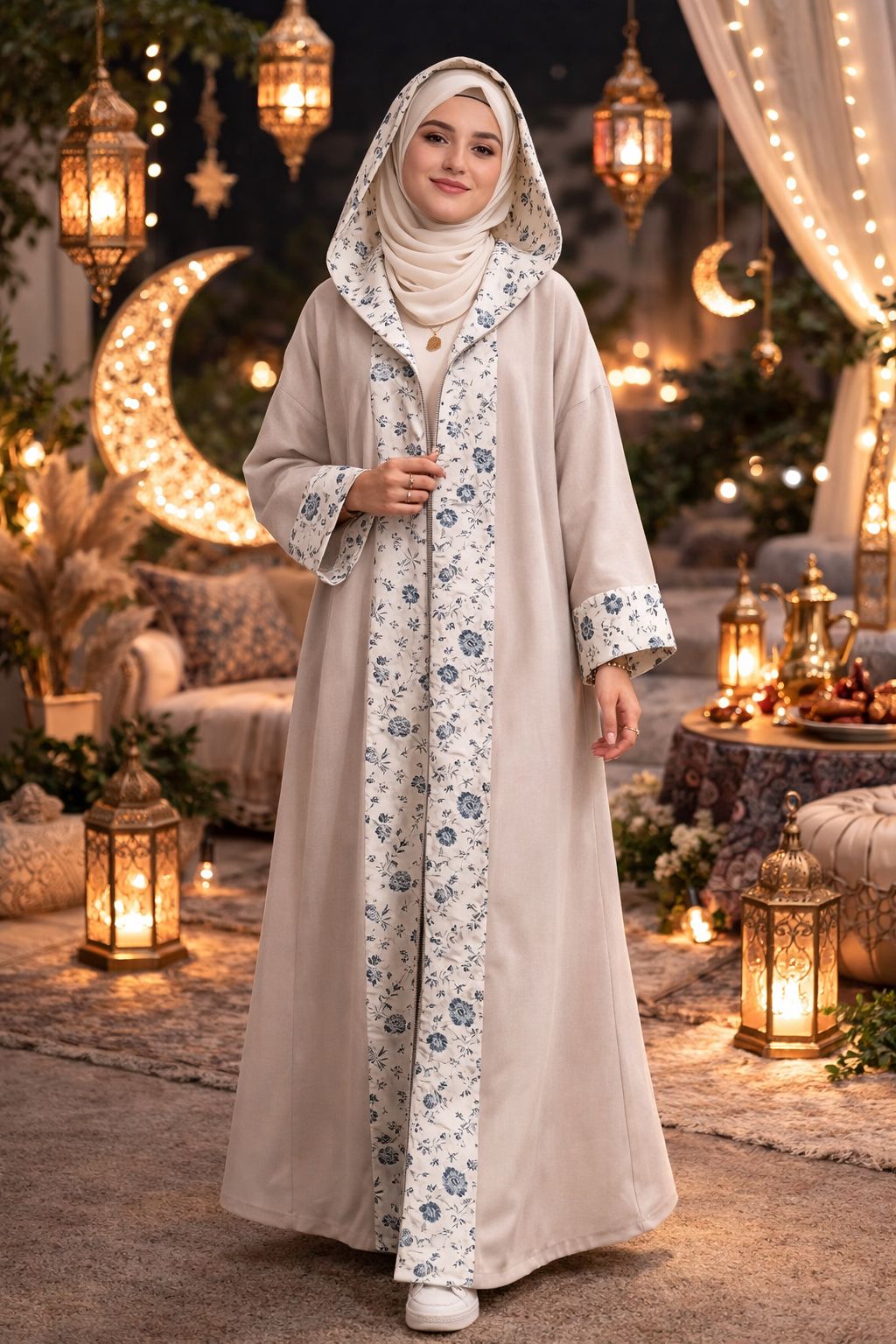 The neutral beige tone makes it effortlessly versatile, while the lightweight material ensures comfort throughout the day. Perfect for Ramadan gatherings, Eid celebrations, or special evening occasions, this piece combines modesty with modern style.