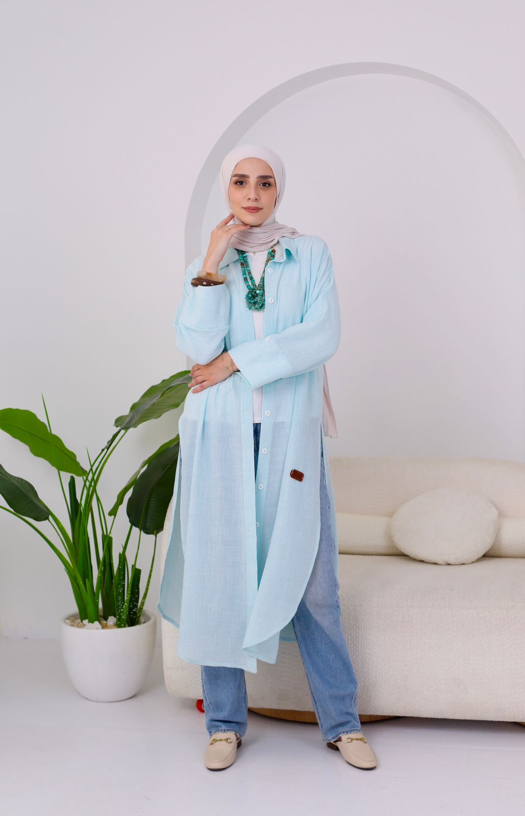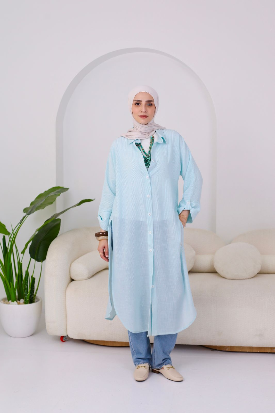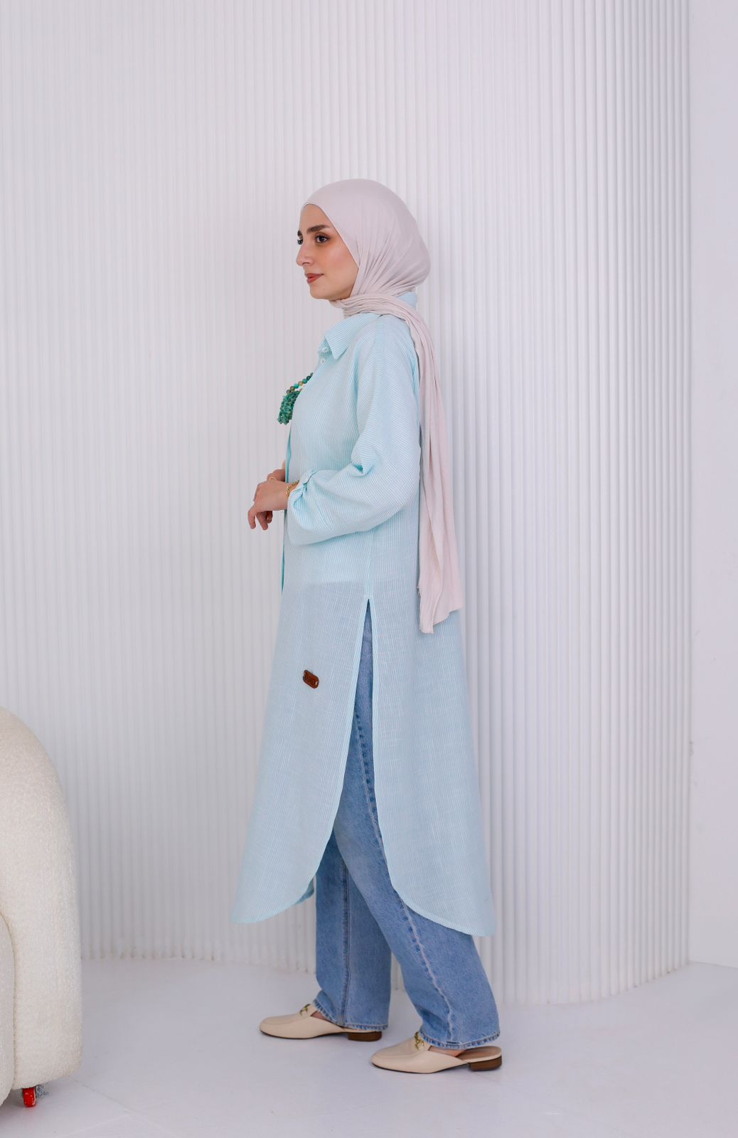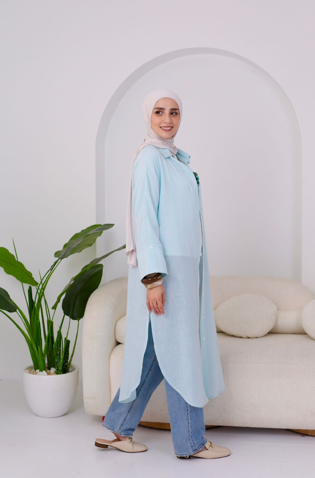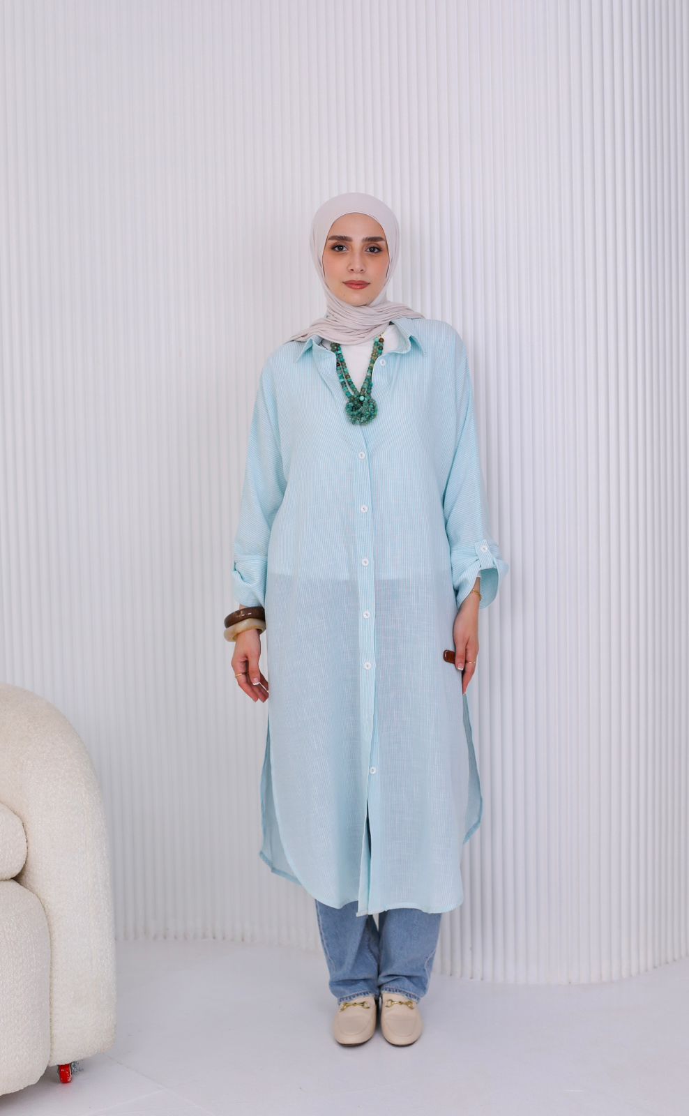 A relaxed long shirt made from premium striped cotton for an effortlessly fresh look.